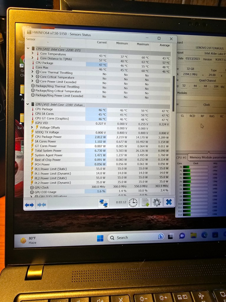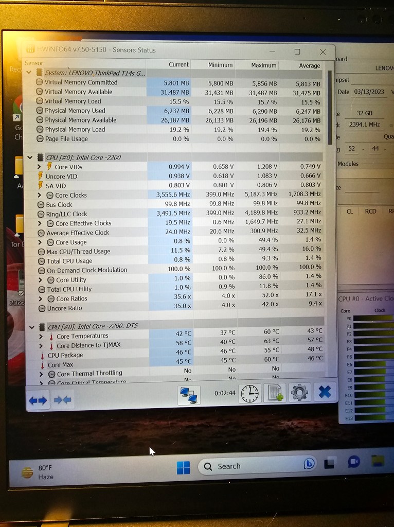 Here is the specs of the hardware running normally: